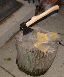 I used this Russian axe, sharpened with a Baldor grinder, cleaned the edge with a stone, took a wooden piece.