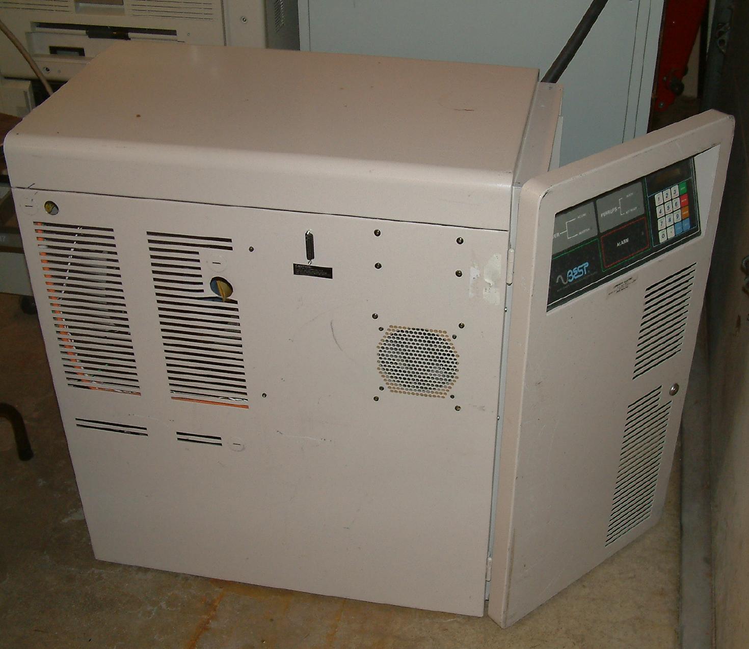 This Ferrups UPS is a steel cabinet about 3x3x1.5 feet. It has the front panel